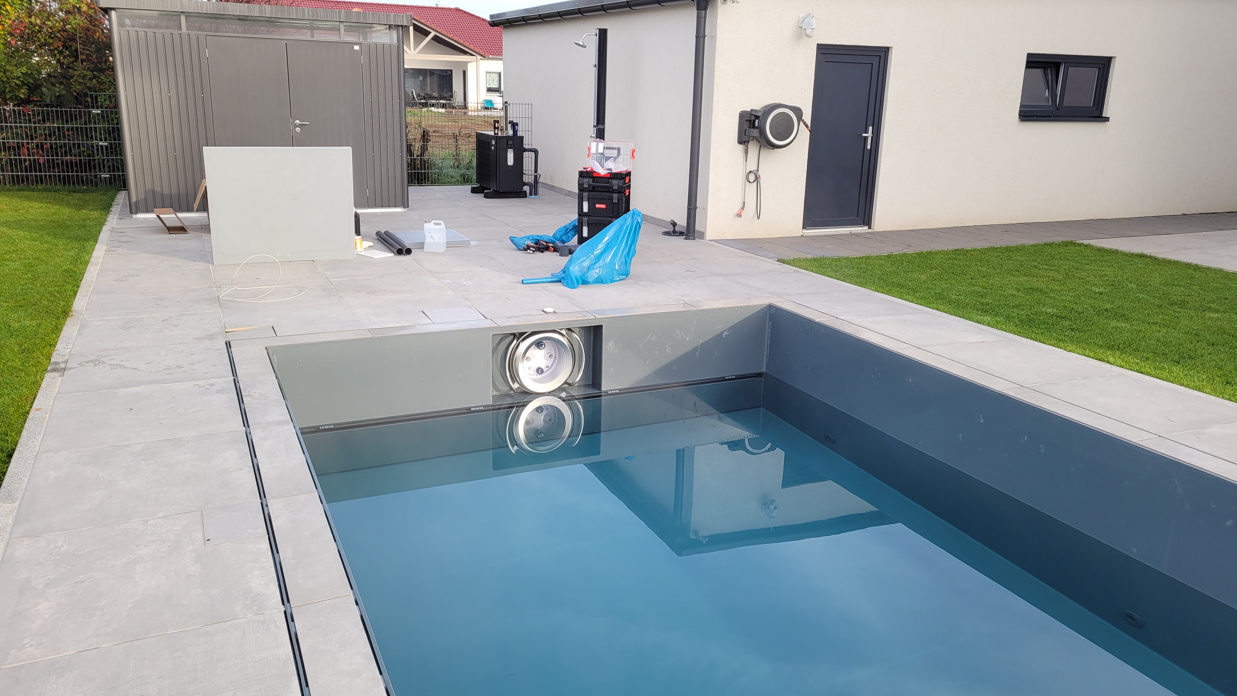 Während der Bauphase des Pools wurden wir stets durch aktuelle Bilder aus dem Werk auf dem Laufenden gehalten. Die Informationen bezüglich aller vorzubereitenden Maßnahmen waren sehr gut, so konnten wir bis zum vereinbarten Liefertermin alles entsprechend durchführen (lassen). Die Lieferung verlief reibungslos, alles funktionierte nach dem vereinbarten Zeitplan. Unsere Erwartungen in die Qualität des Pools wurden augenscheinlich erfüllt und auch der Einbau verlief zügig und reibungslos.